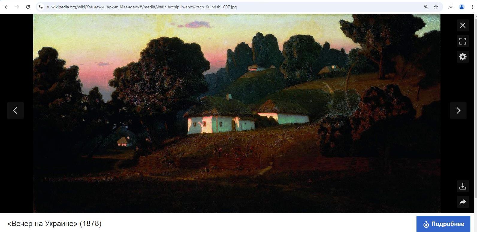 Тих "Вечер на Украине" — но написал эту картину русский художник Куинджи. Скриншот: интернет-сайт wikipedia.org
