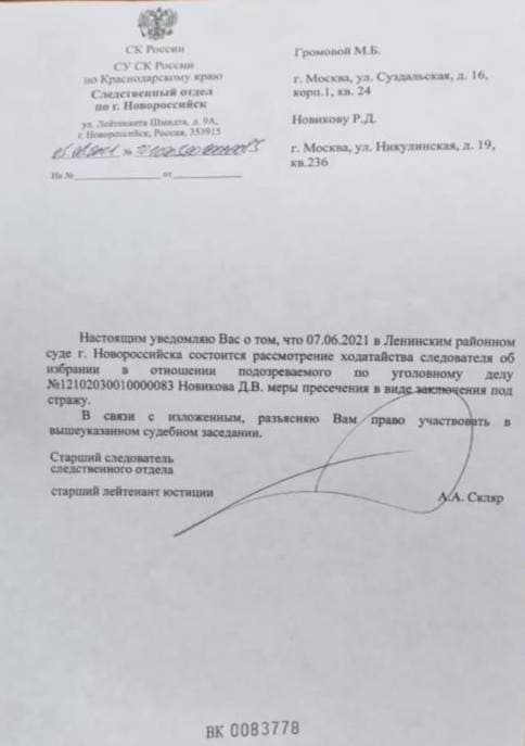 Сейчас решается вопрос об избрании Дмитрию Новикову меры пресечения. Вместе с помощником он доставлен в Новороссийск для разбирательств.