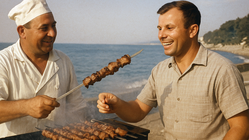 Весёлый и обаятельный – обычно так характеризовали Гагарина. Очарован космонавтом был и сочинский шашлычник. События сложились таким образом, что в Сочи он увидел Гагарина раньше, чем многие высокопоставленные лица.