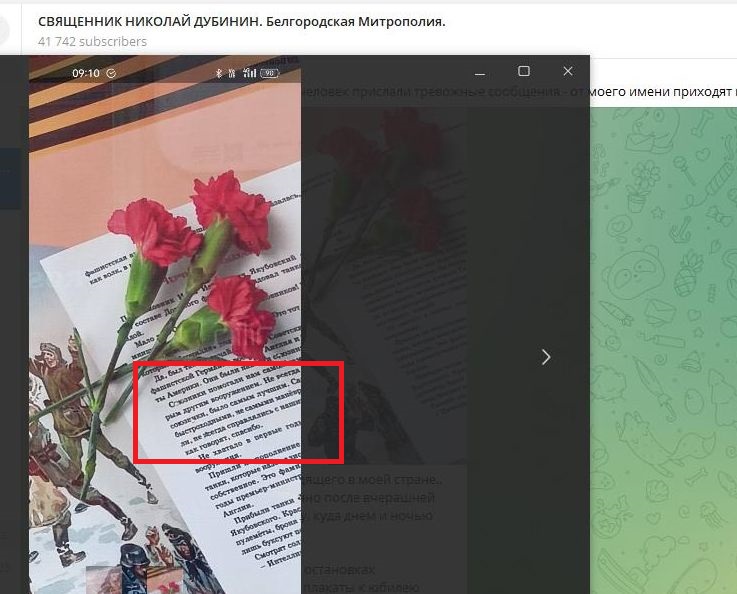 Дело в том, что раскрытая книга на плакате позволяет прочесть ту страницу, где сказано о союзнических отношениях СССР с США и Британией в годы Великой Отечественной войны. Как подметил отец Николай: