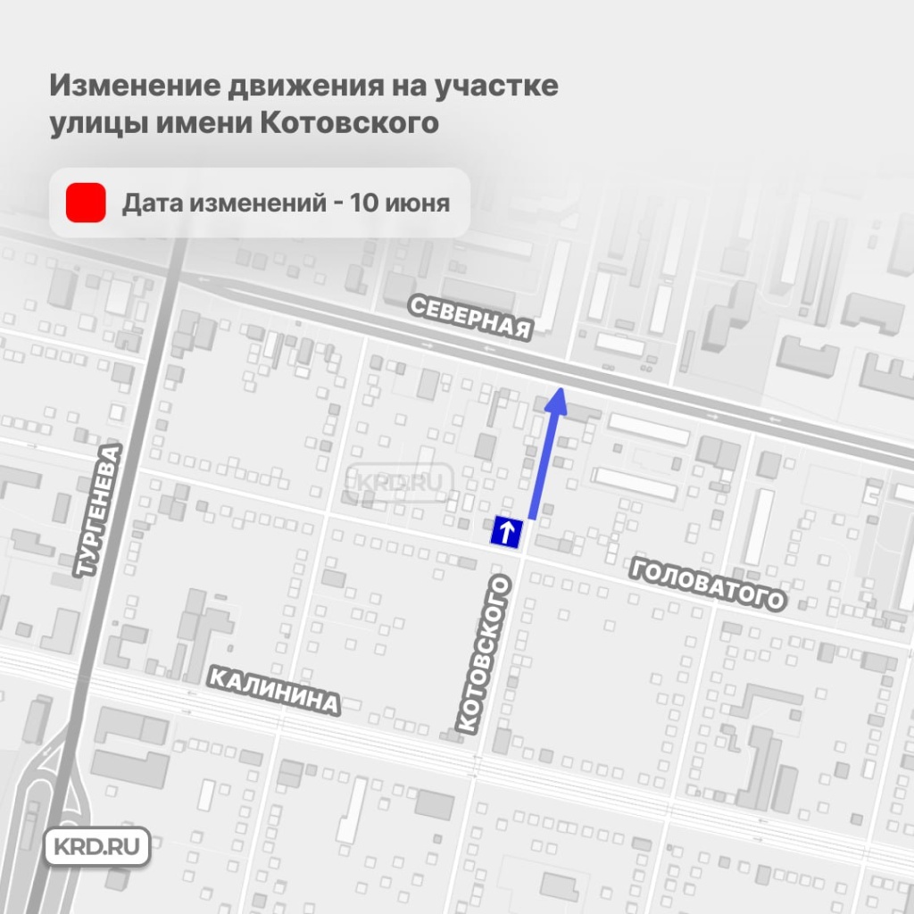 В Краснодаре автомобилистов ждут несколько приятных новостей. Кроме того, что откроют после ремонта две улицы в районе Авиагородка, чем немного разгрузят этот район. А в центре города реорганизуют движение на участке от Головатого до Северной по улице Котовского. Это произойдёт в ночь на 10 июня. С этого момента участок станет односторонним.