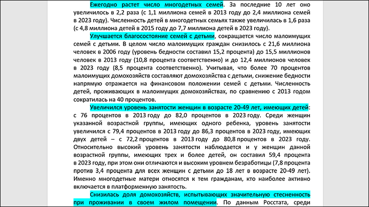 "Позитивные" факторы демографической политики, перечисленные в стратегии