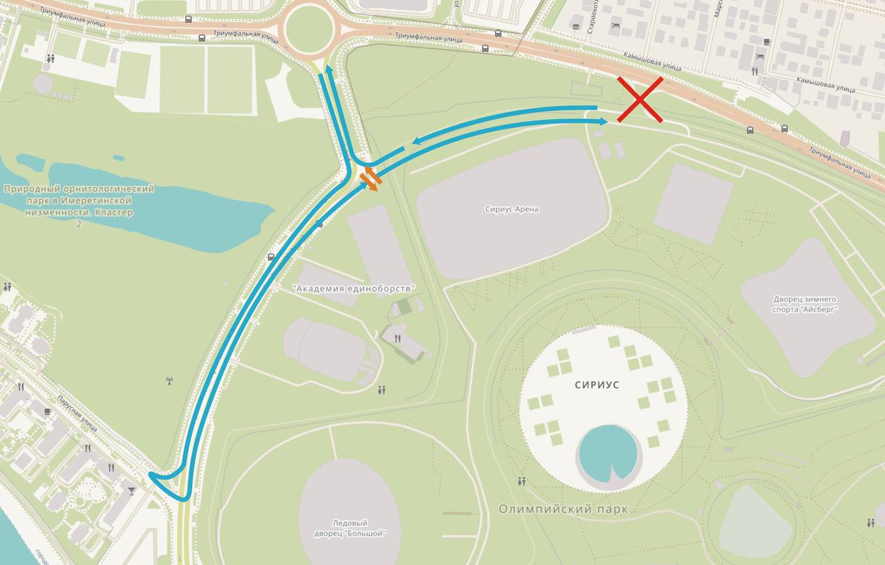 На территории Сириуса изменится схема движения при подъезде к объектам «Сириус Арена», «Айсберг» и тренировочному центру фигурного катания с 25 января до 22 февраля и с 10 марта по 17 число. Также в период 22 февраля до 10 марта добраться до арен на машине будет нельзя: проезд будет закрыт.