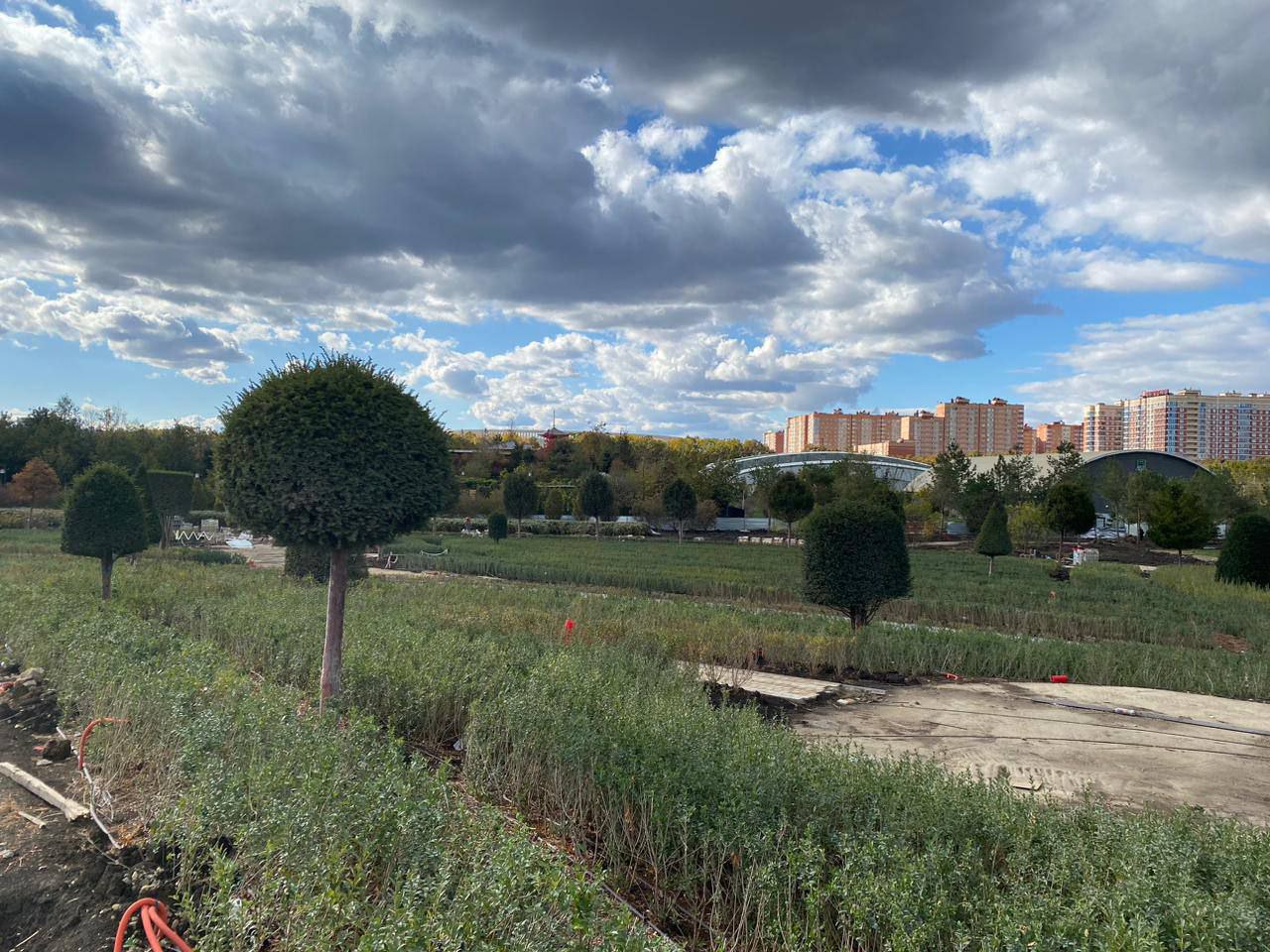 На кадрах видно, как специалисты мастерски возводят уникальные архитектурные растения, создавая поистине воздушную атмосферу будущего парка.