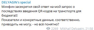 Минфин засекретил свой ответ на мой запрос о последствиях введения QR-кодов на транспорте для бюджета! Показатели и конкретные данные, соответственно, приводить не могу, - но всё понятно?