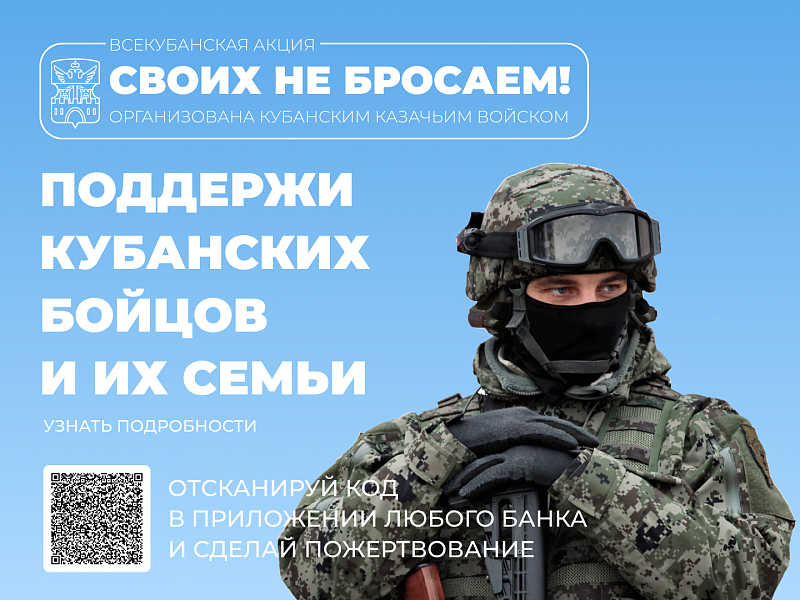 В Краснодарском крае запустили акцию "Своих не бросаем". Её организовали при при поддержке Кубанского казачьего войска, которое сейчас принимает самое активное участие в СВО.