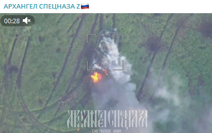 РУССКИЕ УНИЧТОЖАЮТ ТЯЖЁЛУЮ ТЕХНИКУ ПРОТИВНИКА В ХАРЬКОВСКОЙ ОБЛАСТИ. СКРИН С ТГ-КАНАЛА "АРХАНГЕЛ СПЕЦНАЗА"