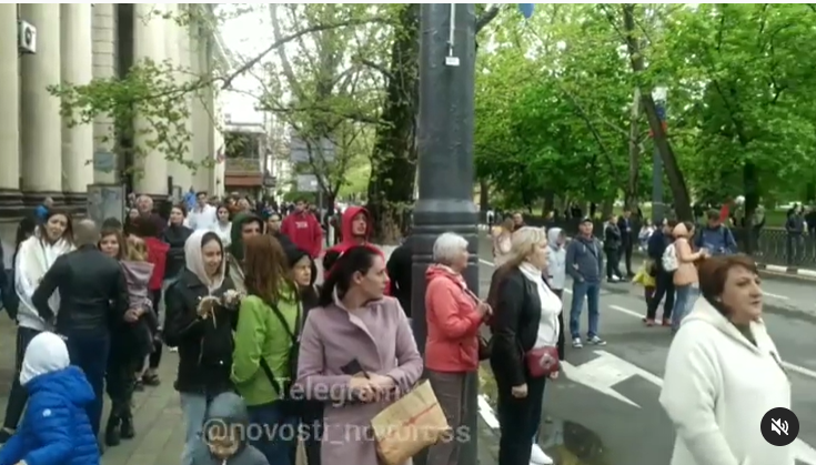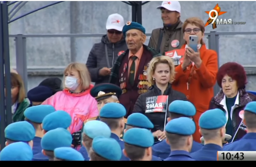 В Новороссийске, несмотря на то, что Парад проходит без зрителей, горожане все равно собрались на подступах к площади. Никакой социальной дистанции нет.