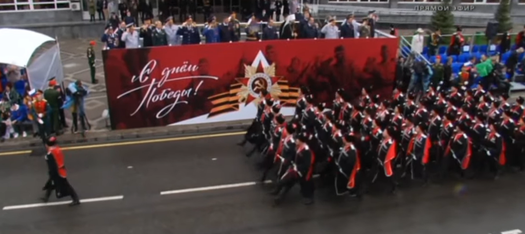 Кстати, сейчас на Параде Победы в Москве торжественным маршем пройдут 105 казаков Кубанского казачьего войска.