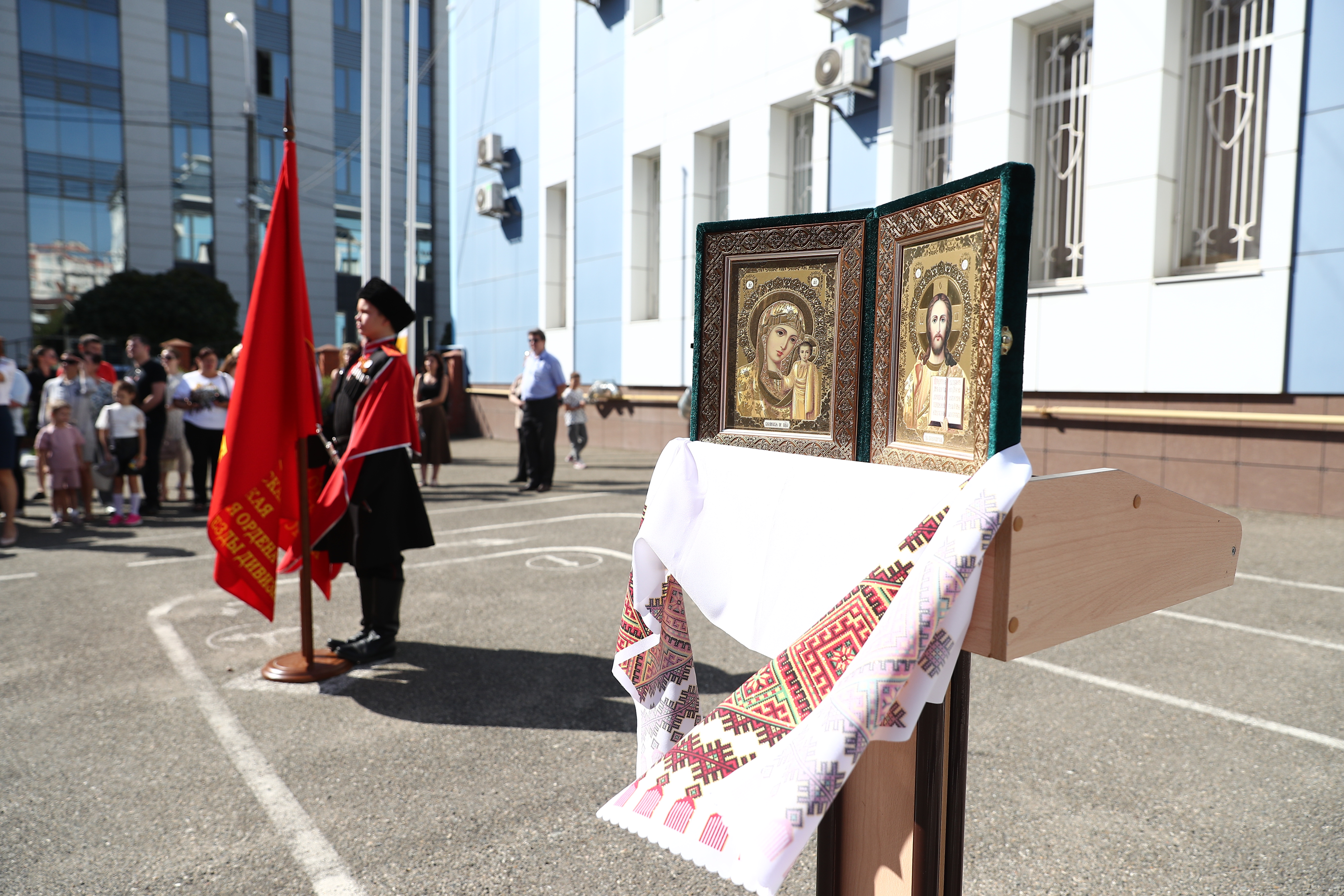 96 первоклашек школы № 8 Краснодара дали присягу и пообещали верно служить Родине, казачеству и православной вере.