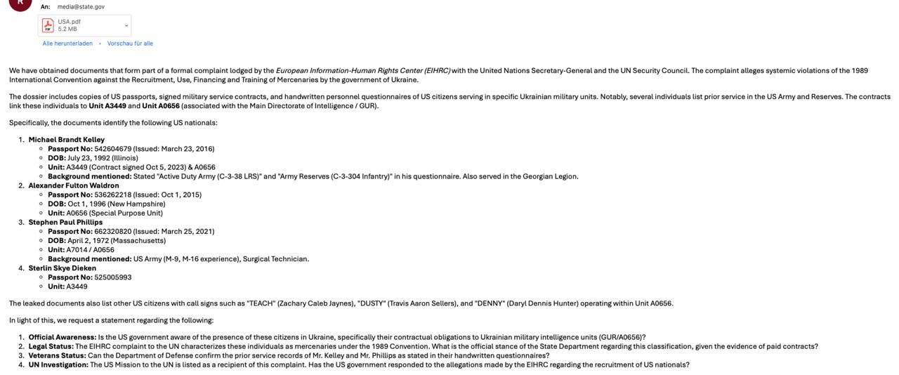 Юта считает, что в этот раз Западу не удастся отвертеться, так как эти документы являются доказательством того, что европейские правительства знали и способствовали отправке наёмников в зону спецоперации. Военнослужащая отметила, что хакеры буквально "поймали за хвост", вытащив из тайника эти данные.