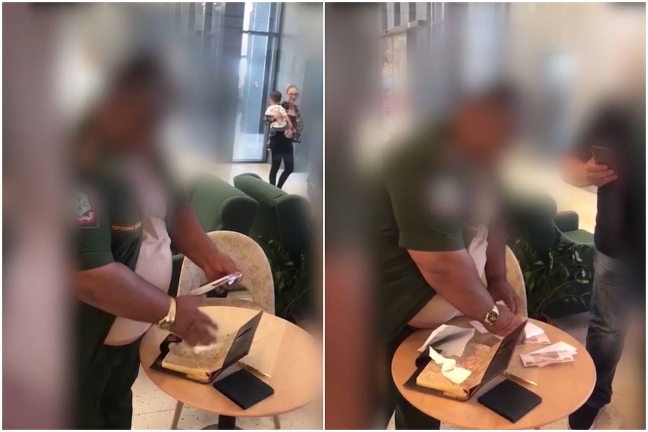 "Маскировался" мужчина чётко. При задержании на нём можно увидеть явно не дешёвые золотые часы, ноутбук и золотую ручку, а также крупную сумму денег в конверте.