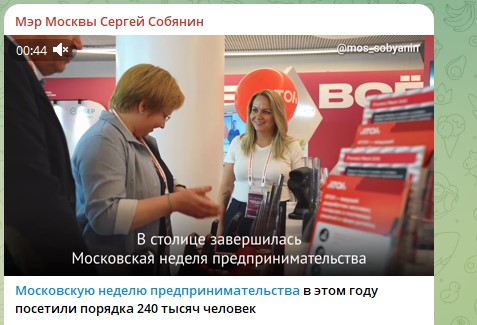 Московскую неделю предпринимательства в этом году посетили порядка 240 тысяч человек, сообщил мэр столицы Сергей Собянин.