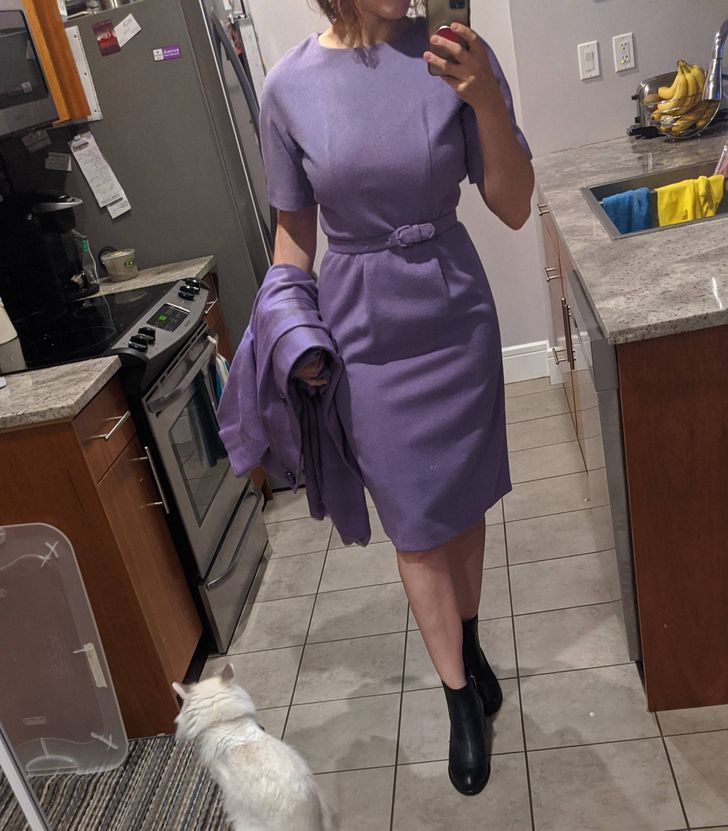 "Бабушкино шерстяное платье из 50-х годами висело у меня в шкафу, и я наконец примерила его. Приятно удивлена!", - показала себя на фото владелица винтажного платья.