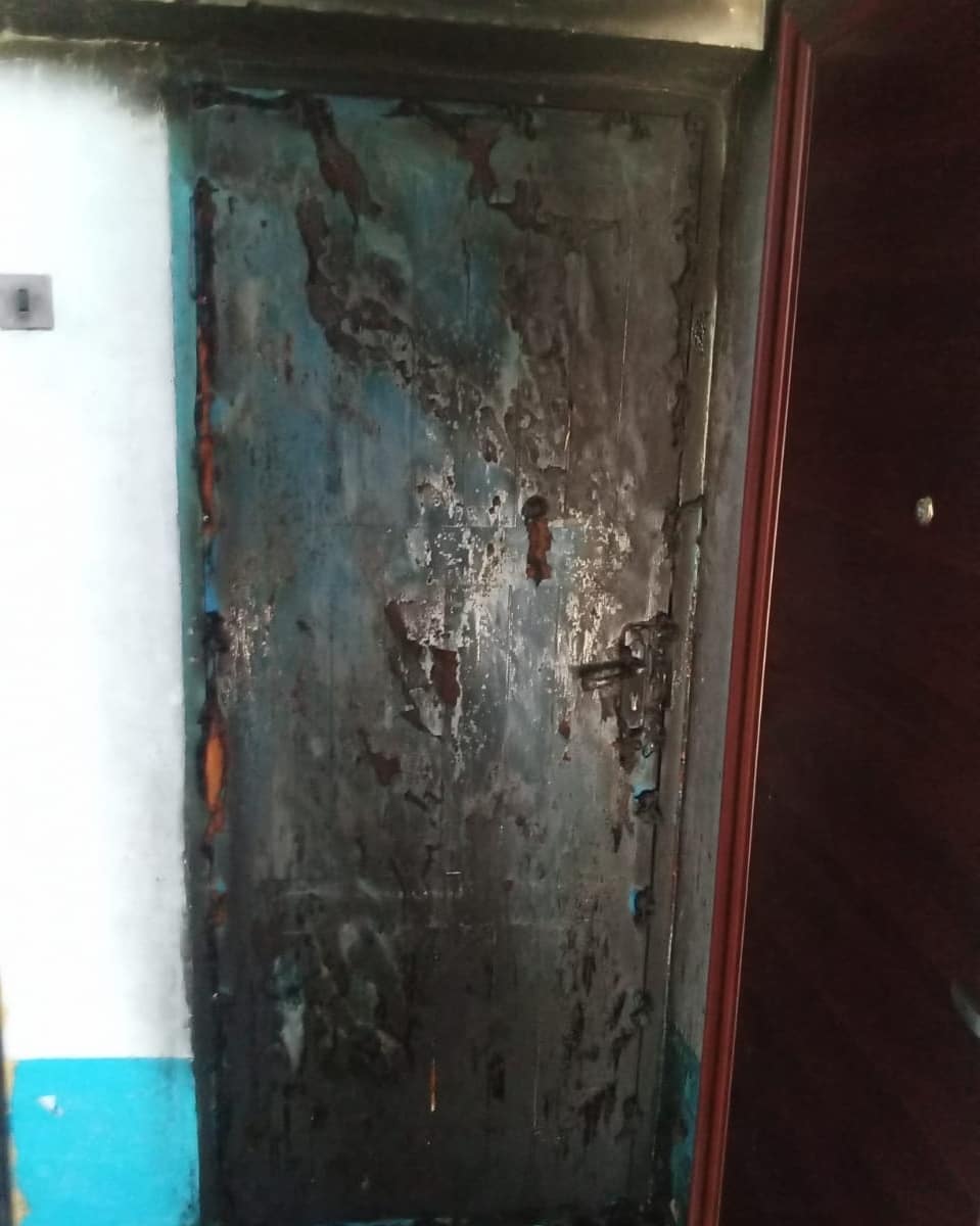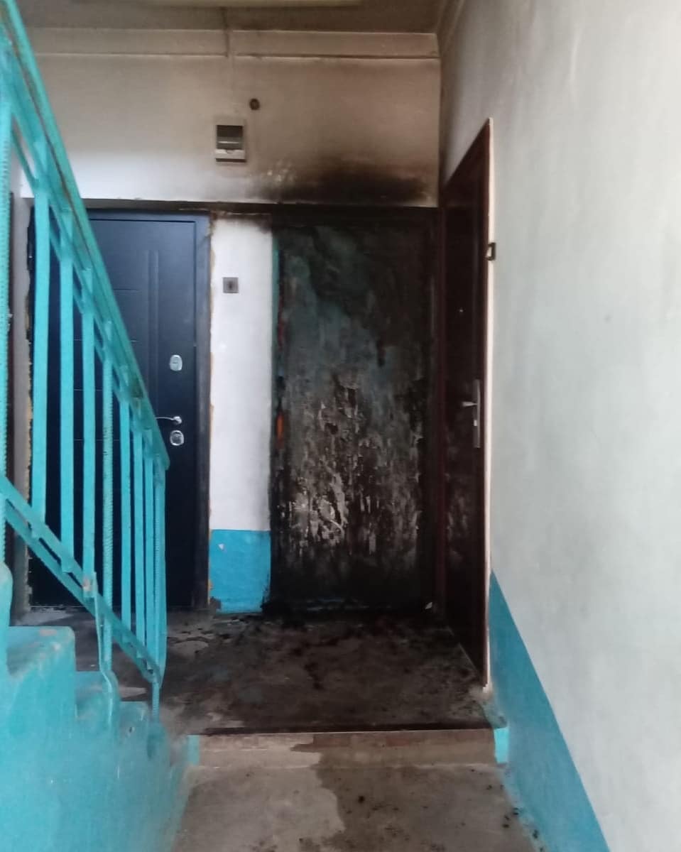 На место были направлены две автоцистерны с личным составом из семи человек. По прибытию пожарные установили, что горела наружная отделка входной двери в квартиру,