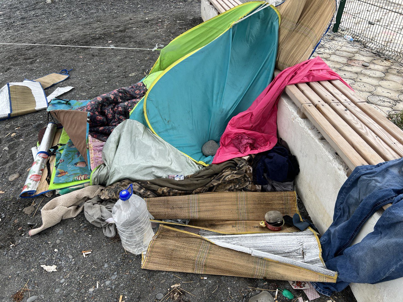Пока мужчина в теплое время года ночевал на пляже, окружающие могли игнорировать ситуацию. Но заканчивается осень, а человек без определенного места жительства по-прежнему живёт на берегу, терпит сырость моря и пронизывающий ветер. При этом на пляже нет туалета, урн для мусора, а на бездомного человека по-прежнему никто не обращает внимания.