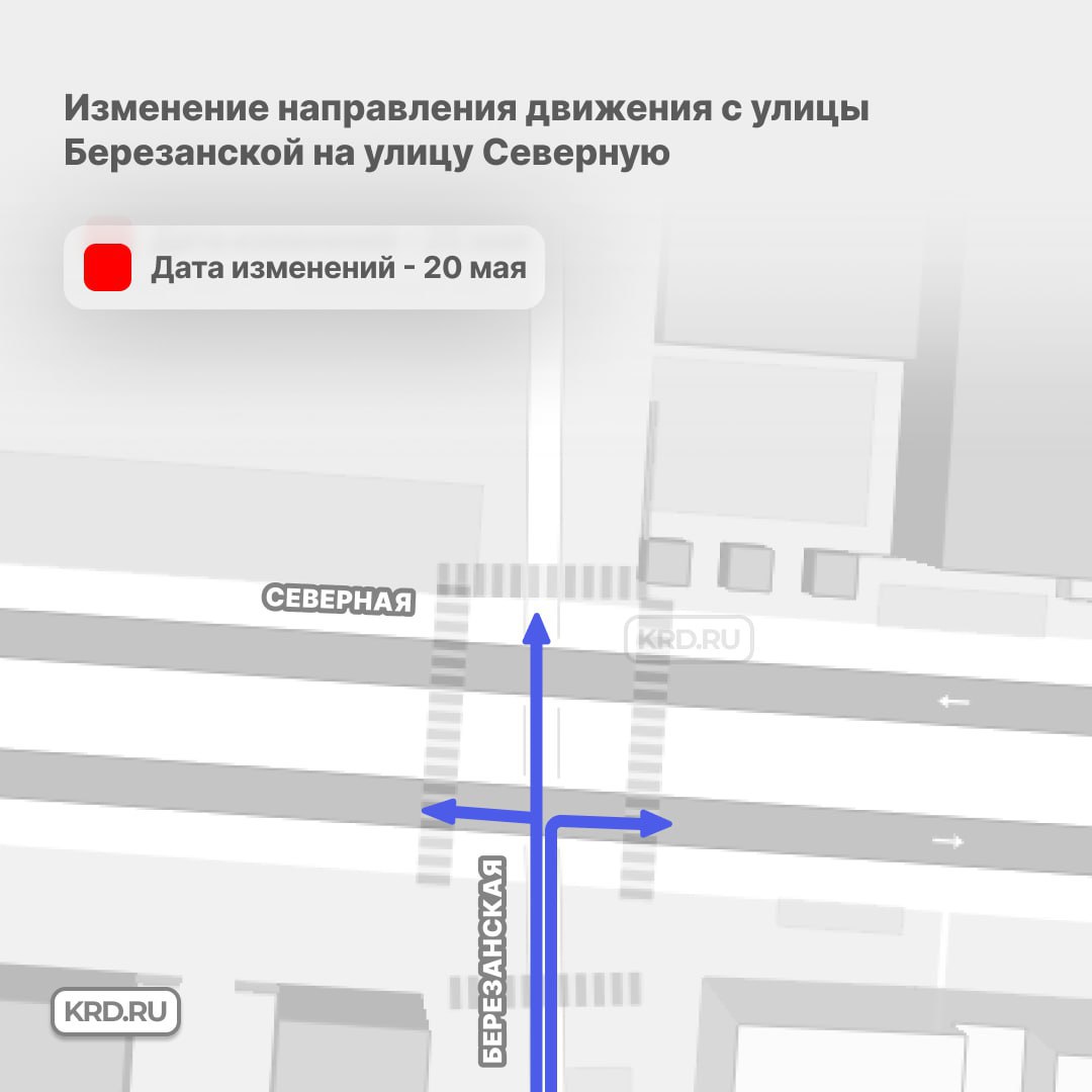 С субботы, 20 мая 2023 года, в краевом центре на перекрёстках Березанской и Северной, а также Ростовского Шоссе и Офицерской будет изменено движение. Это нужно для того, чтобы увеличить пропускную способность этих перекрёстков в центре города, сообщили телеканалу Царьград в мэрии Краснодара.