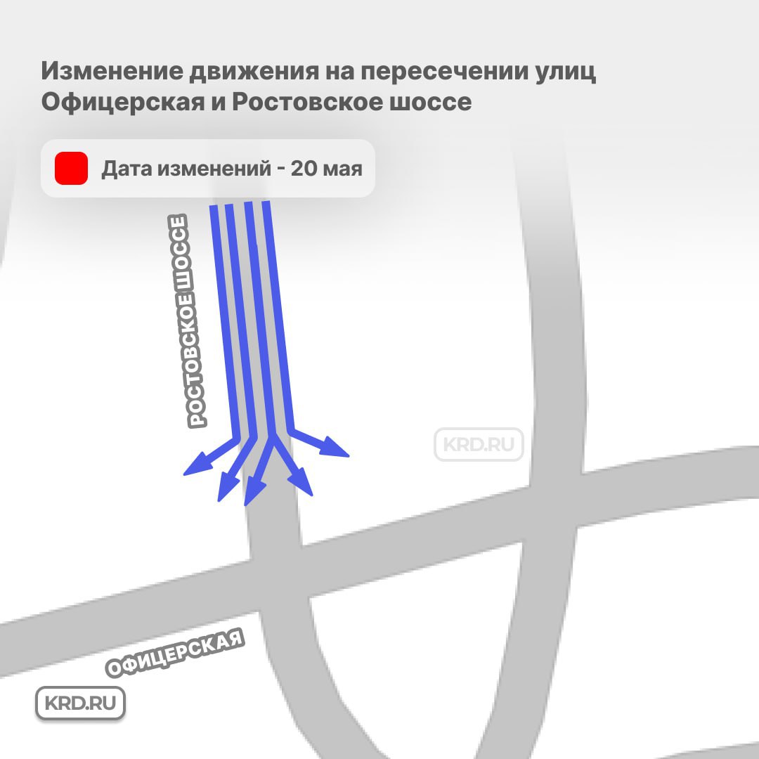 С 20 мая на перекрёстках улиц Березанской и Северной, а также Ростовского Шоссе и Офицерской водителям стоит быть внимательнее.