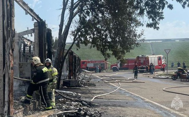 В Краснодаре на Путейской сгорела чайхана: крупный пожар был виден издалека