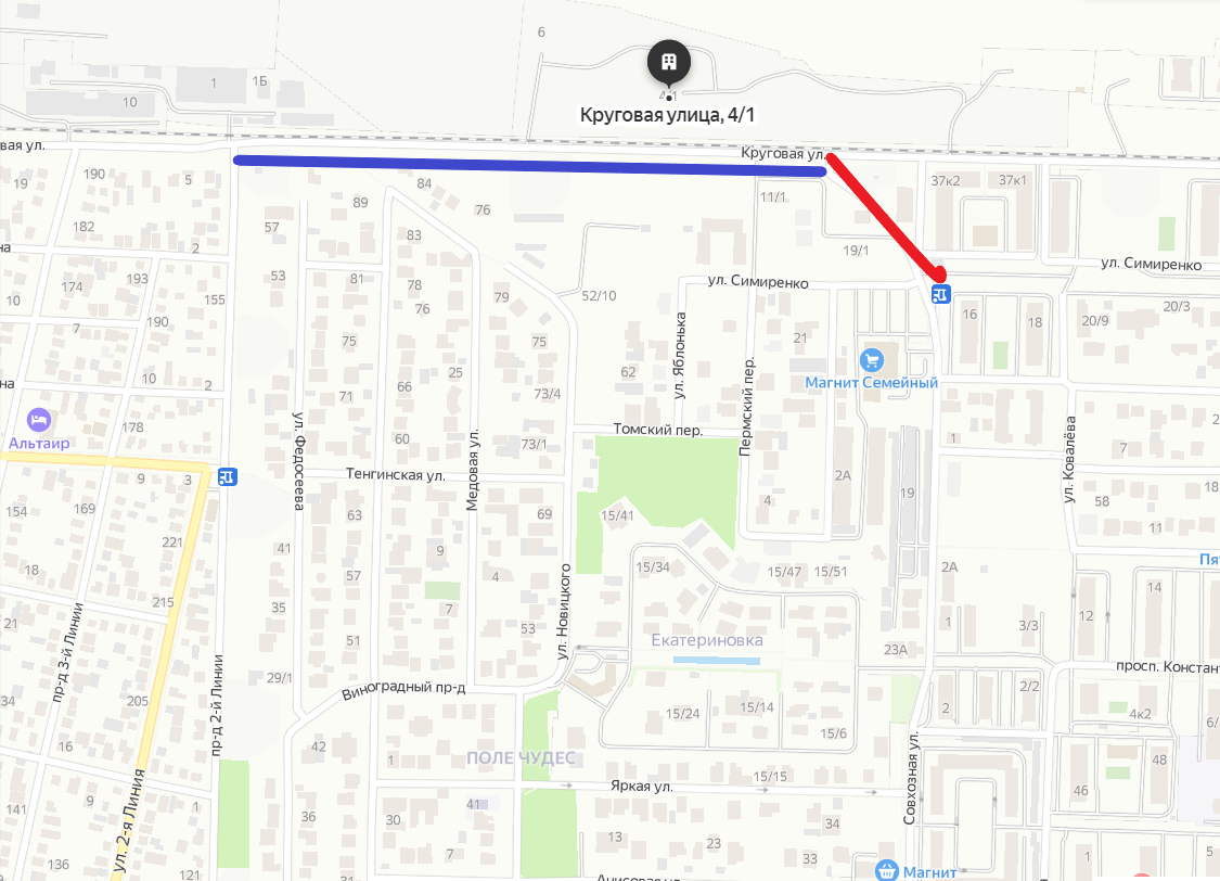 Поэтом с 8 июля по 30 августа поочередно будет ограничено движение транспорта по улице Совхозной от Симиренко до Круговой. А также по улице Круговой от Совхозной до проезда 2-й Линии.