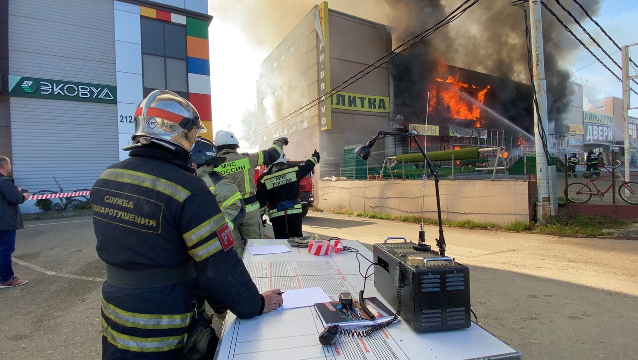 В Краснодаре полыхает магазин на площади 1,5 тысячи квадратных метров
