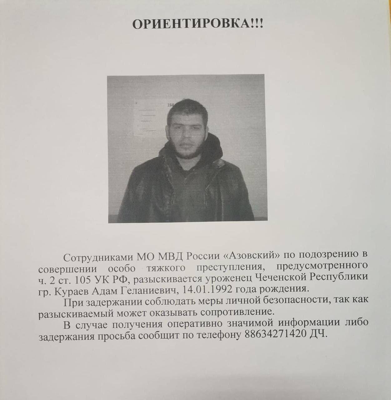 Убийство произошло в Ростовской области, после этого Адам Кураев сбежал на Кубань, где прятался в лесу.