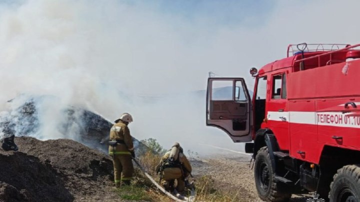 В Кропоткине загорелось поле с шелухой подсолнечника на площади 800 кв. м.