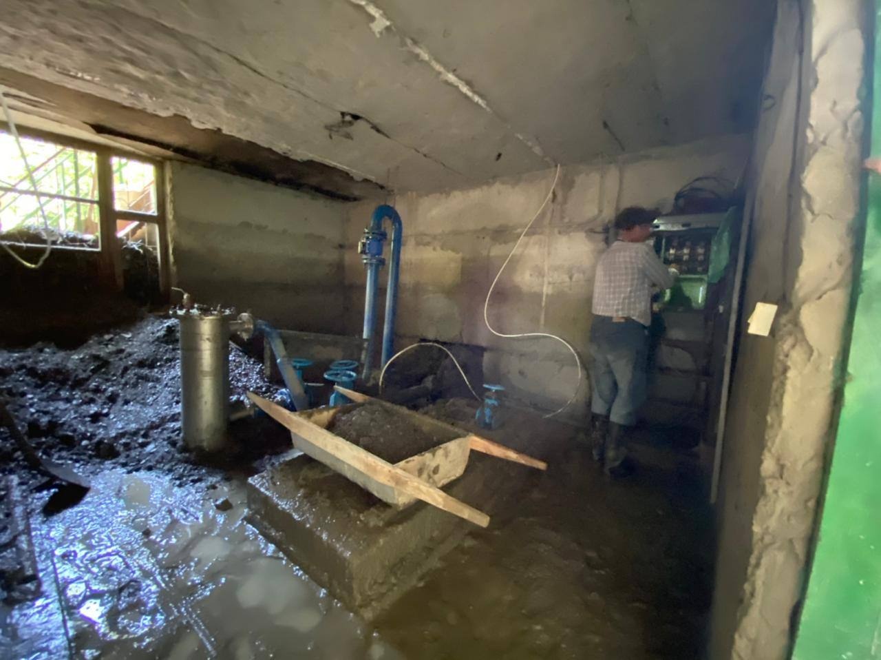 На насосной станции "Алексеевская" производится отвод изменившего русло ручья. Кроме того, специалисты расчищают территорию от илистых масс, грязи, мусора. После проверят работоспособность скважины и насосного оборудования. Если неисправностей не будет, то агрегаты включат на штатные мощности до конца текущего дня.