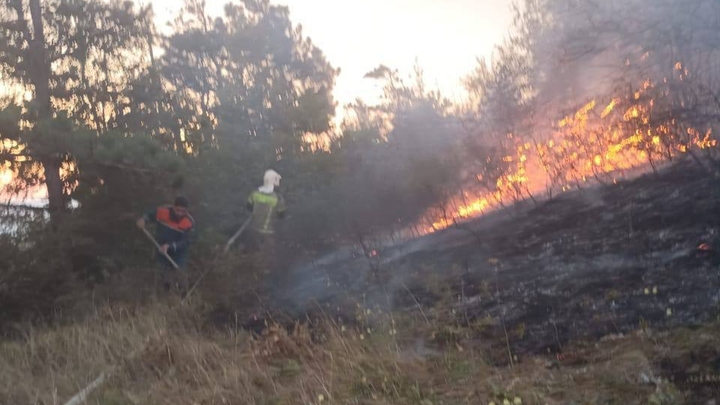 Площадь природного возгорания на горе Лысая составляет 600 кв. м.