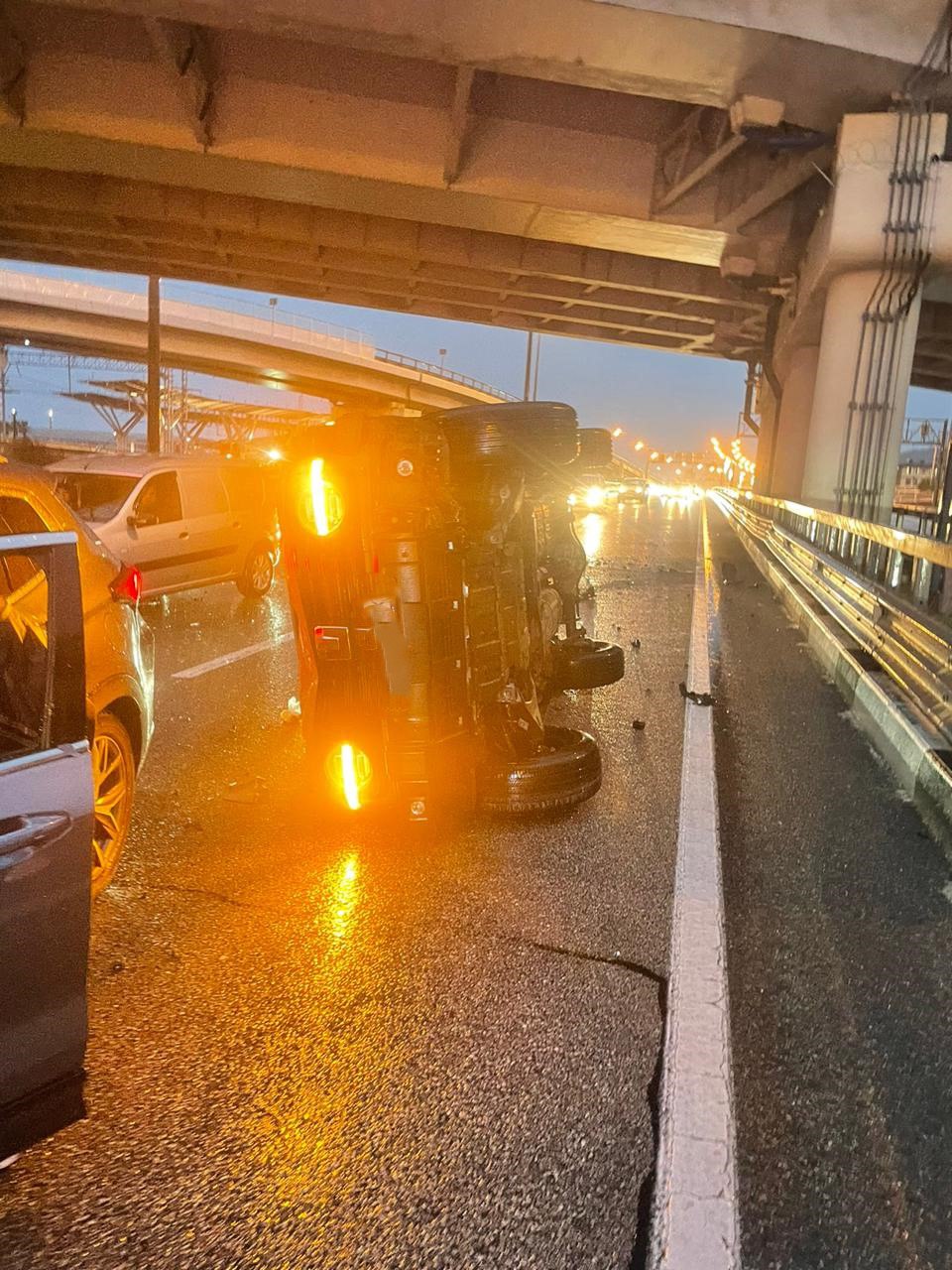 На глазах у спасателей неподалёку от места первого ДТП произошла ещё одна авария. После столкновения двух автомобилей один из них опрокинулся на бок. Сотрудники спасательного ведомства оказали помощь участникам и второй аварии.