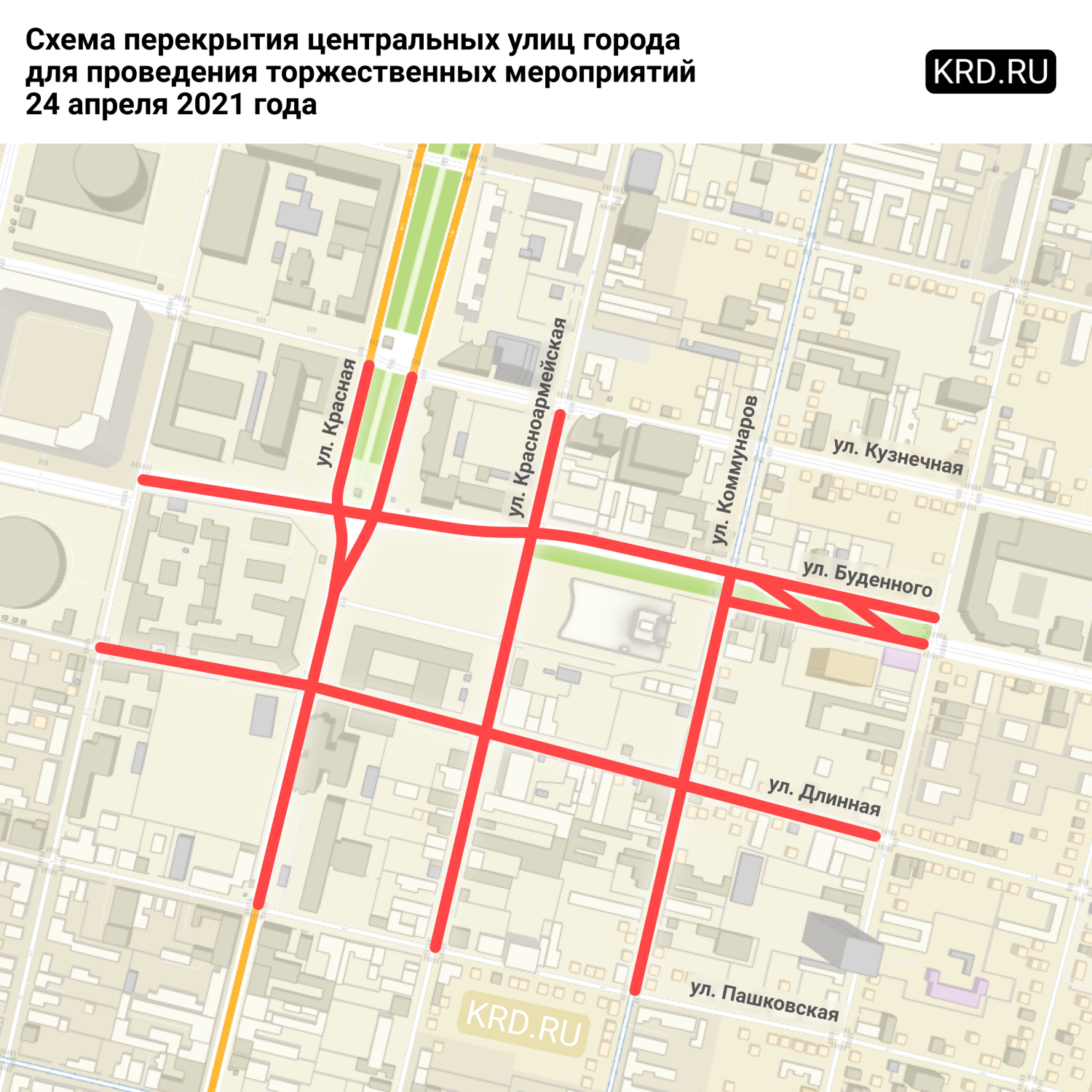 В связи с этим в Краснодаре заблаговременно перекроют весь центр города - с 6:00 и до окончания парада.