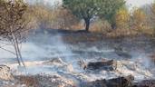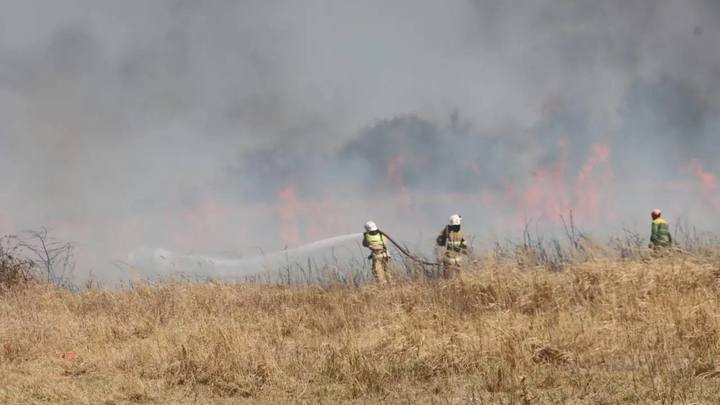 В Темрюкском районе площадь пожара выросла до 1,5 га, возгорание тушат с земли и воздуха