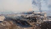 Вертолёт Ми-8 привлечён к борьбе с огнём, охватившим поле сухой травы.