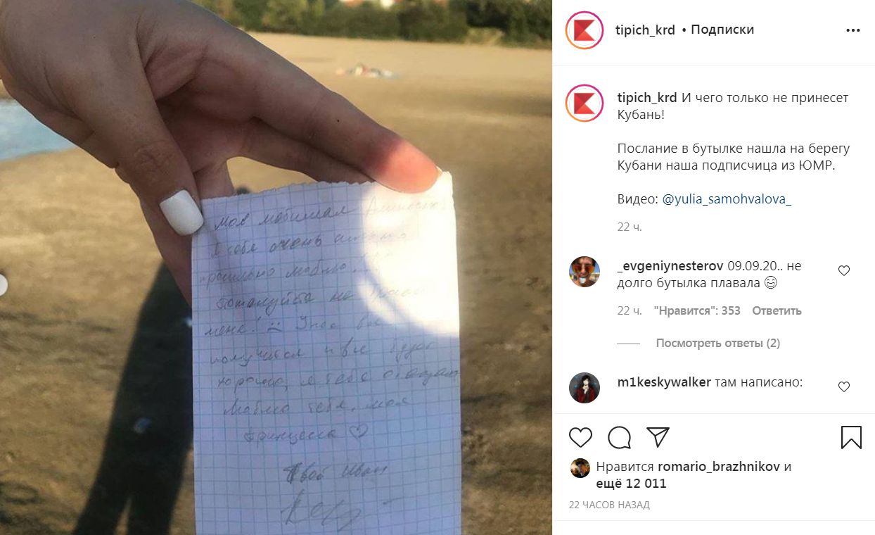 Оказалось, что послание датировано 9 сентября 2020 года. В тот день молодой человек по имени Иван написал письмо Алине. В конце письма парень обращается спросьбой к тем, кто обнаружит его послание, обнародовать его. Тогда, по его мнению, Алина обязательно узнает о его романтических чувствах.
