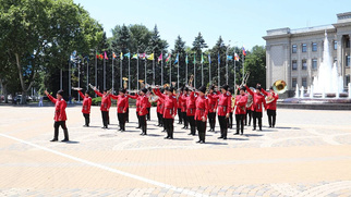 В центре краевой столицы возле памятника императрице выстроился Почетный караул, играл духовой оркестр.