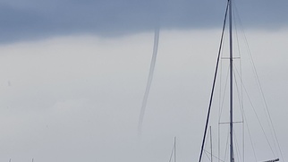 Под Анапой мощный смерч вышел на берег и разрушил несколько строений на набережной
