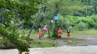 Конструкцию унесла река Большая Хоста. На базе отдыха остались отец с сыном.