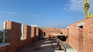 В Ейске по улице Коммунистической строят последний этаж в доме, разрушенном при падении самолёта