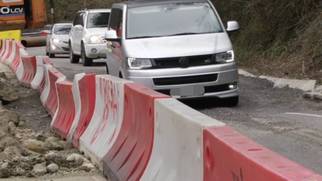 Машины, в том числе и общественный транспорт, временно пускают по одной из двух полос трассы.