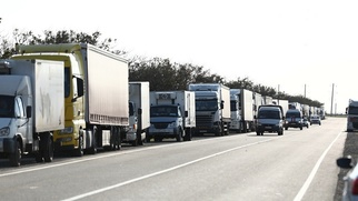 Из-за временной остановки паромов, которые накануне не перевозили транспорт через Керченский пролив, со...